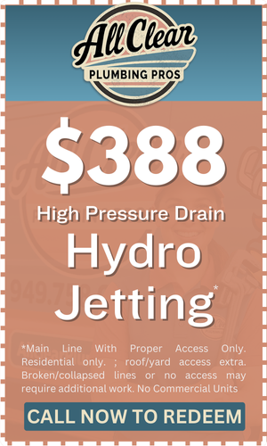 When it comes to stubborn clogs and slow drains, AllClear Plumbing Pros, Repipe & Drains is Laguna Niguel, CA’s trusted leader in professional hydrojetting services. Our team uses state-of-the-art high-pressure water jetting equipment to blast through years of grease buildup, tree roots, soap scum, and debris that traditional snaking methods often leave behind. Whether you're dealing with a clogged kitchen drain, a backed-up main sewer line, or recurring drain blockages, hydrojetting is the safest, most effective way to completely clear your pipes and restore proper flow — without damaging your plumbing system.Our licensed plumbers proudly serve homeowners and businesses across Mesa, Laguna Niguel, CA, Scottsdale, Chandler, Gilbert, and surrounding Laguna Niguel, CA communities, delivering fast, reliable hydrojetting solutions tailored to each property's needs. Hydrojetting not only eliminates current clogs, but it also scrubs the inside walls of your pipes clean, helping to prevent future backups and costly repairs. If you notice slow draining sinks, gurgling toilets, frequent sewage smells, or water backing up into tubs or showers, it's time to call Delta for a thorough drain inspection and expert hydrojetting service.At AllClear Plumbing Pros, Repipe & Drains, we combine cutting-edge hydrojetting technology with decades of hands-on Laguna Niguel, CA plumbing experience. Every hydrojetting job starts with a detailed drain camera inspection to accurately diagnose the issue before applying the right pressure settings to protect and preserve your pipes. We believe in honest pricing, transparent communication, and delivering lasting results — that’s why so many Laguna Niguel, CA families and businesses trust Delta as their go-to partner for drain cleaning, hydrojetting, sewer line clearing, and emergency drain services. Call us today to schedule your hydrojetting service and experience the Delta difference!